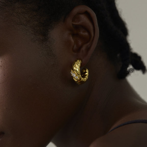 Discover the perfect blend of elegance and modern design with our Electroforming Lightweight 999 Pure Silver Irregular Three CZ Geometric U-shape Hoop Earrings. These stunning earrings are ideal for daily wear, adding a touch of sophistication to any outfit.