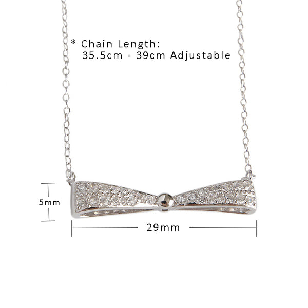 Discover elegance with our Micro Setting CZ Bowknot Necklace, crafted to add a touch of sophistication to any outfit. This exquisite piece features a stunning bowknot design adorned with AAA Cubic Zirconia, expertly set using special micro setting craftsmanship.
